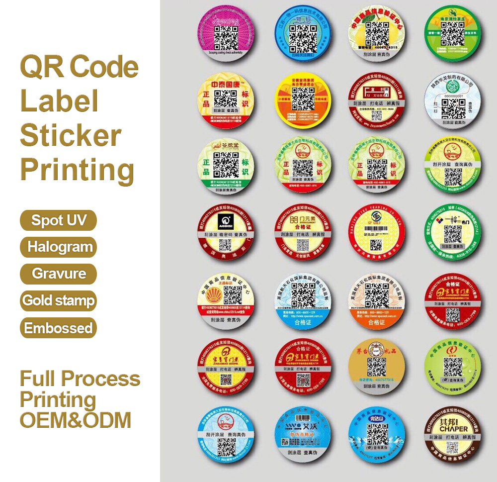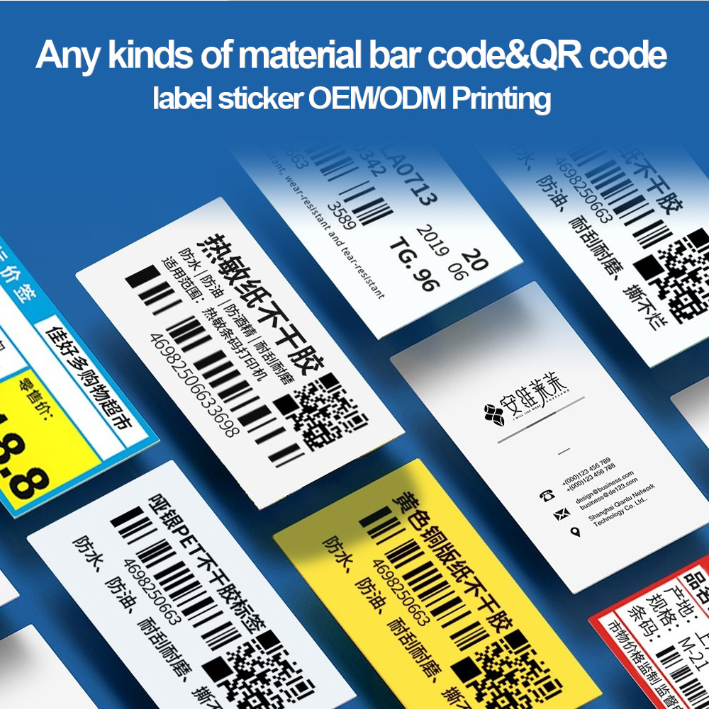 Various material barcodes and QR code stickers are printed and customized. This product is waterproof, high temperature resistant, and tear-resistant. It is especially suitable for outdoor and various environments. There are many choices of materials, such as silver light effect, Halogram, etc. , stickers of various shapes and sizes can be customized.