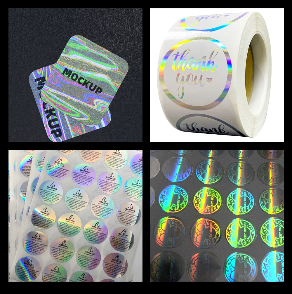 Holographic stickers are groovy baby. Make your custom hologram stickers shine with our rainbowy,any shapes and size can be customized, iridescent, holographic sticker material.